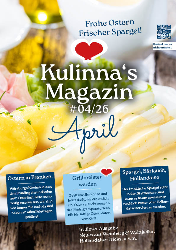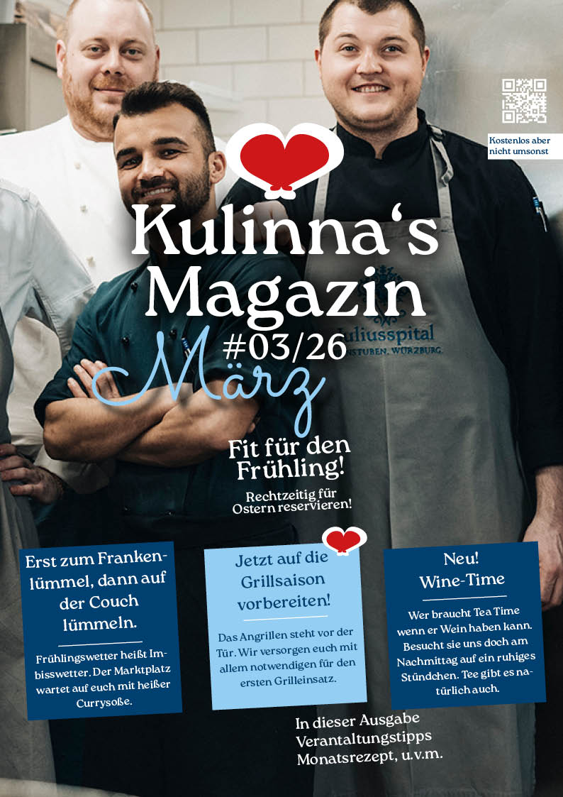 Die Gastwirte Edith und Frank Kulinna betreiben nun seit über 15 Jahren die Weinstuben des Juliusspitals. Mit Charme und höchstem persönlichem Engagement sind beide für Gäste und Mitarbeiter da. Als ausgebildeter Koch, erfahrener Angler und leidenschaftlicher Jäger ist Frank Kulinna insbesondere der Natur verbunden. Dies spiegelt sich nicht zuletzt in der ausgewählten Fisch- und Wildkarte des Restaurants wider.